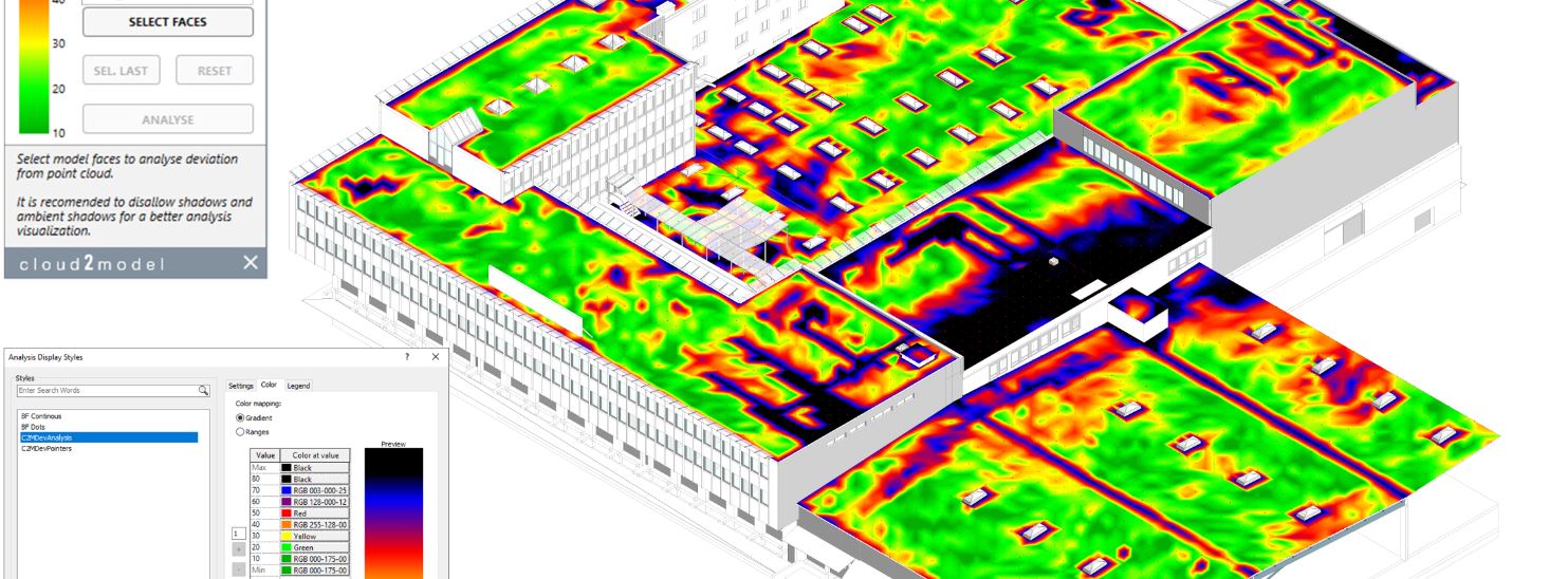 cloud2model® is the extension for Autodesk Revit for precise and efficient modelling and review of point cloud based BIM. It radically improves the productivity with a large set of smart tools that greatly supports scan to BIM workflows. From visualization and navigation helpers, to automatic creation of BIM objects and detailed analysis of the accuracy of the model.